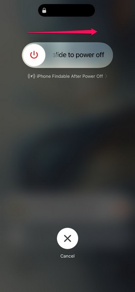 3.När iPhone stängs av helt,tryck och håll in sido-/strömknappenoch fortsätt att hålla den tills enheten startar om med Apples signaturlogotyp.