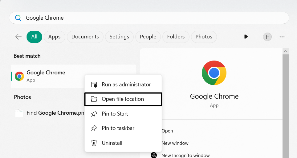 1.TypJavai sökrutan klickar du på pilen bredvid den i resultaten och väljerÖppna filplatsen.
