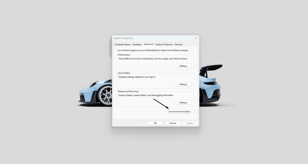 Följ de tillagda stegen för att uppnå samma sak genom att manuellt ändra miljövariablerna:
