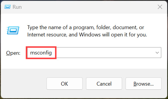 2.I denKör kommandorutan, typmsconfigoch tryck påEnter-tangentenatt öppnaSystemkonfiguration.