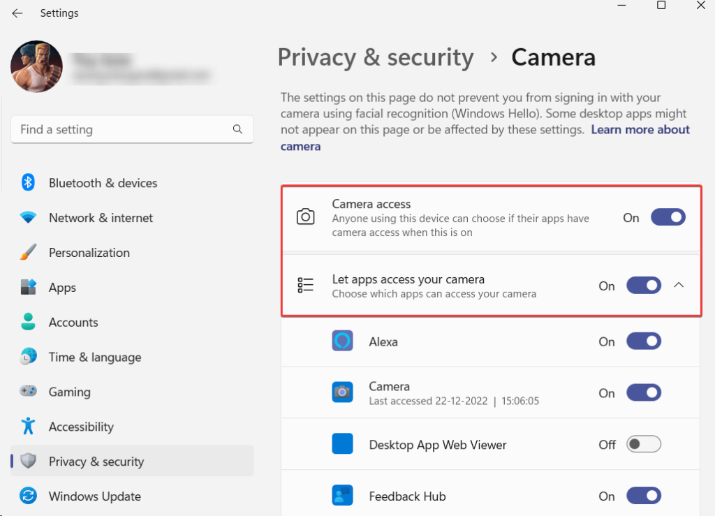 Steg 3 –Slå på knappen bredvidKameraåtkomstochLåt appar komma åt din kamera.