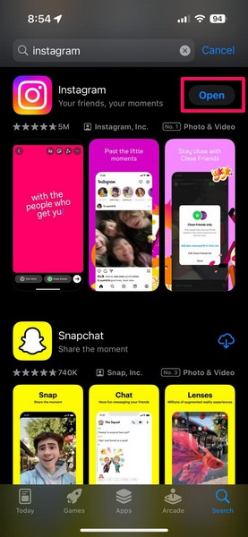 9.När det är gjort trycker du påÖppna-knappför att starta Instagram-appen.
