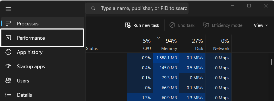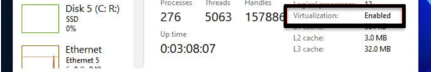 3.Slutligen, klicka påCPUiPrestandafliken och se omAktiveradskrivs emotVirtualisering.