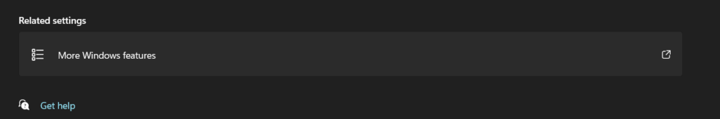 2.Klicka påValfria funktioneroch klicka sedan påFler Windows-funktioneriRelaterade inställningaravsnitt.