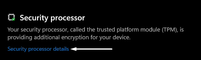 2.I denEnhetssäkerhetavsnitt, klicka påSäkerhetsprocessordetaljerför att flytta till det avsnittet.