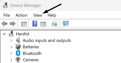 1.ÖppnaEnhetshanterarenpå din Windows 11-dator och klicka påSei den översta menyfliksområdet.