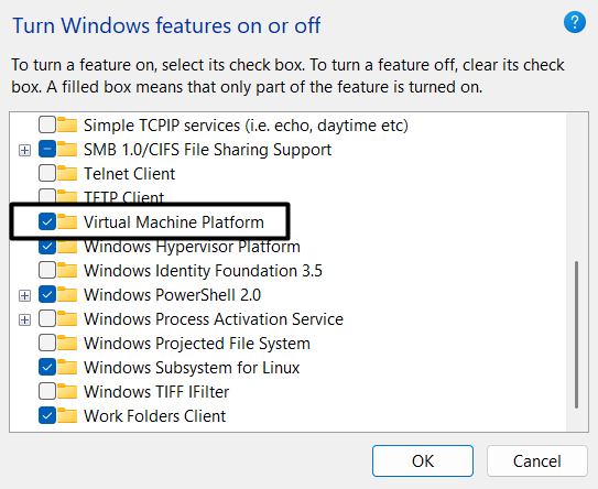 7. Aktivera Virtual Machine Platform på din PC