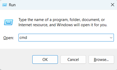 1.AnvändWindows + Rgenväg för att öppnaSiktnytta, typCMDi den och tryck påSkriva in.