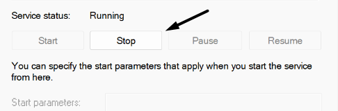 3.Välj nuStoppiServicestatusför att stoppa den och klicka sedan påStarta omalternativet att återställa den igen.