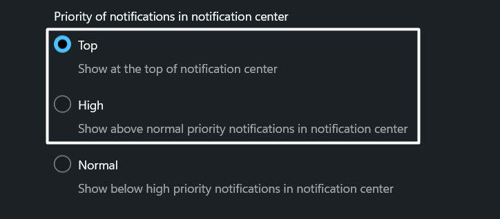 6.Slutligen, flytta tillPrioritet för meddelanden i meddelandecentralenavsnitt och ställ in det påBästaellerHögför att se aviseringar ovanför mindre prioriterade meddelanden.