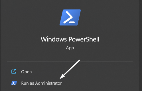 1.ÖppnaWindows sökruta, typWindows PowerShelloch väljKör som administratörunder appen för att köra den med administratörsrättigheter.