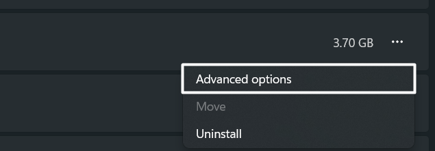 3.Klicka sedan påtre prickar (…)bredvid appen och väljAvancerade alternativfrån rullgardinsmenyn.