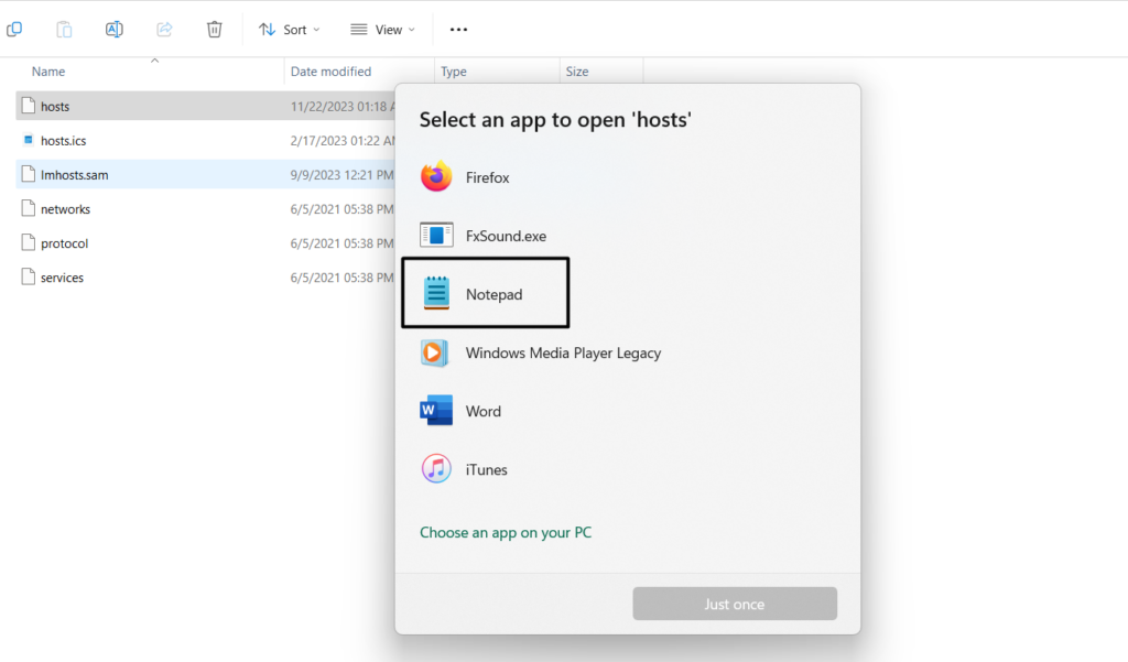 Vissa användare i onlineforumen nämnde att de fixade problemet med att fjärrskrivbordet inte fungerade på sin Windows 11-dator avlägga till värddatorns IP-adressi Hosts-filen. Så gör samma sak för att fixa det på din dator. Vi har nämnt stegen för att göra detsamma nedan: