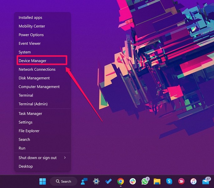 1. Starta Enhetshanterareni Windows 11 som förklaras iFixa #5.