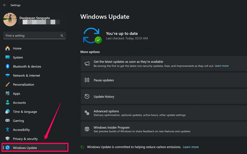 Följ stegen nedan för att söka efter de senaste Windows 11-uppdateringarna på din PC eller bärbara dator: