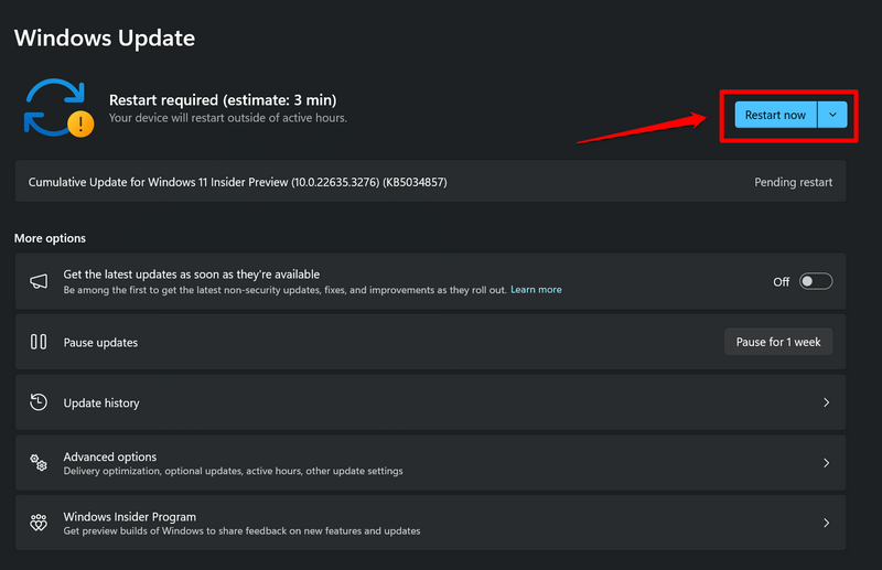 5.Efter att nedladdningsprocessen är klar måste du göra detstarta om din Windows 11-enhetför att uppdateringarna ska installeras och tillämpas.