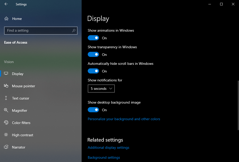 - FrånVisa aviseringar förrullgardinsmenyn, välj5 sekunder
