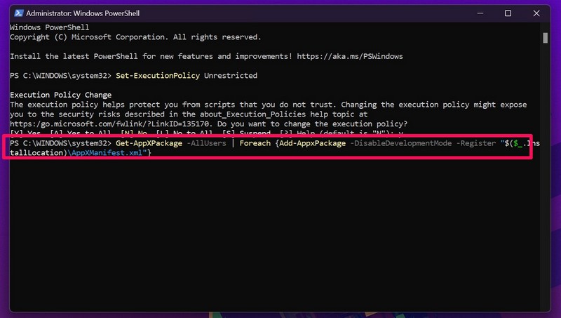 4. Återställ Windows-säkerhet med Powershell i Windows 11