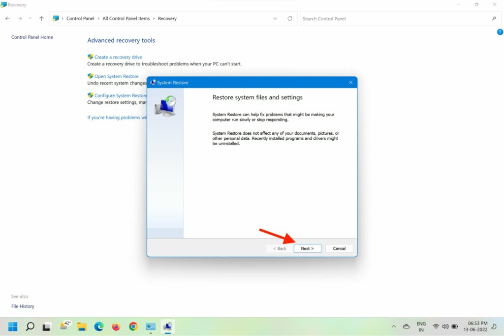 Om alla ovanstående metoder misslyckas och du är säker på att en nyligen installerad tredjepartsprograminstallation eller ändringar du gjort orsakar problemet, kan du rulla tillbaka till den tidigare systemåterställningspunkten för att åtgärda problemet. Så här gör du.