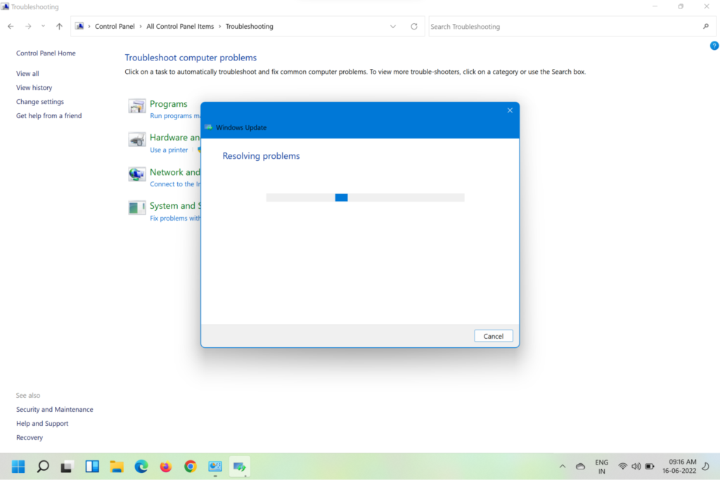 5.Klicka på på nästa sidaÅtgärda problem med Windows UpdateunderSystem och säkerhet.