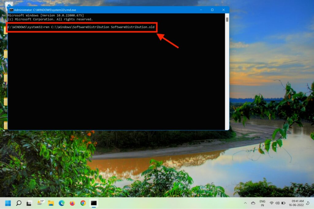 5.Rensa nu och byt namn påProgramvarudistributionochKatrot 2mappar med kommandonren C:WindowsSoftwareDistribution SoftwareDistribution.oldochren C:WindowsSystem32catroot2 Catroot2.old.