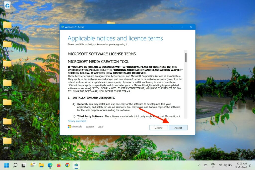 4.KlickJa, accepteraAnvändarvillkoroch väljUppgradera den här datorn