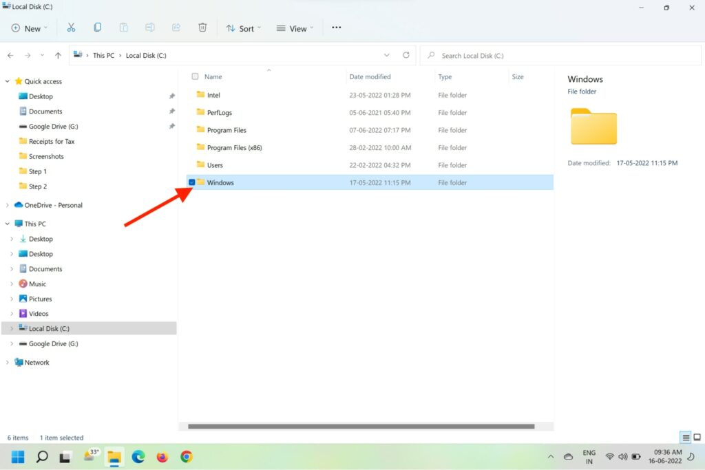 2.Gå tillSystem (C:) enhetoch öppnaWindowsmapp.