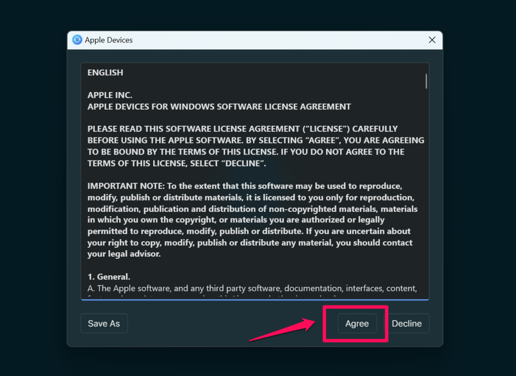 2.På följande uppmaning klickar du påKomma överensknappen för att ge samtycke till Apples villkor.
