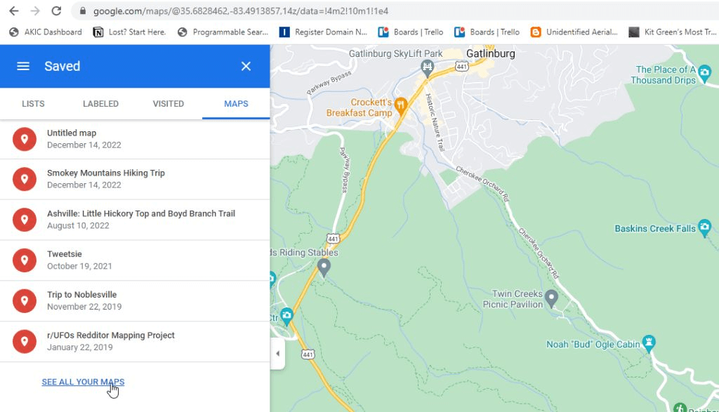 Ett annat område i Google Maps är ditt My Maps-bibliotek där du kan skapa och spara kartor med waypoints. Du kan också mäta avstånd på dessa kartor.