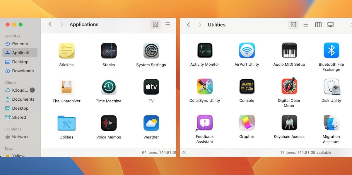 - På Macöppnar du Migration Assistant via Finder > Favoriter > Applications > Utilities > Migration Assistant.