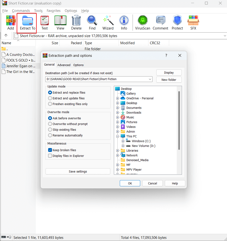 Steg 3 –Välj destinationssökvägen där du vill spara de extraherade RAR-filerna.