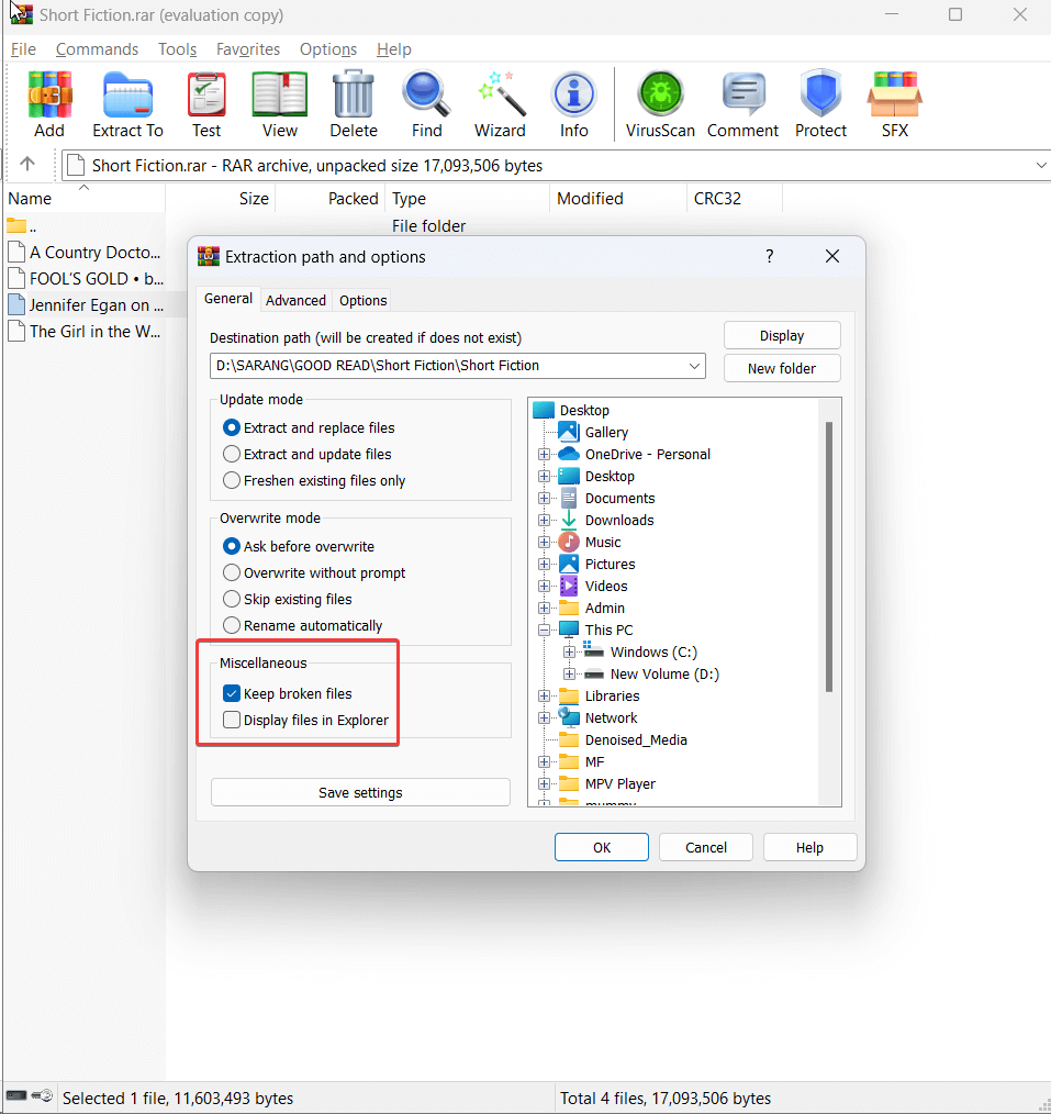 Lösning nr. 2 – tvinga fram de skadade RAR-filerna