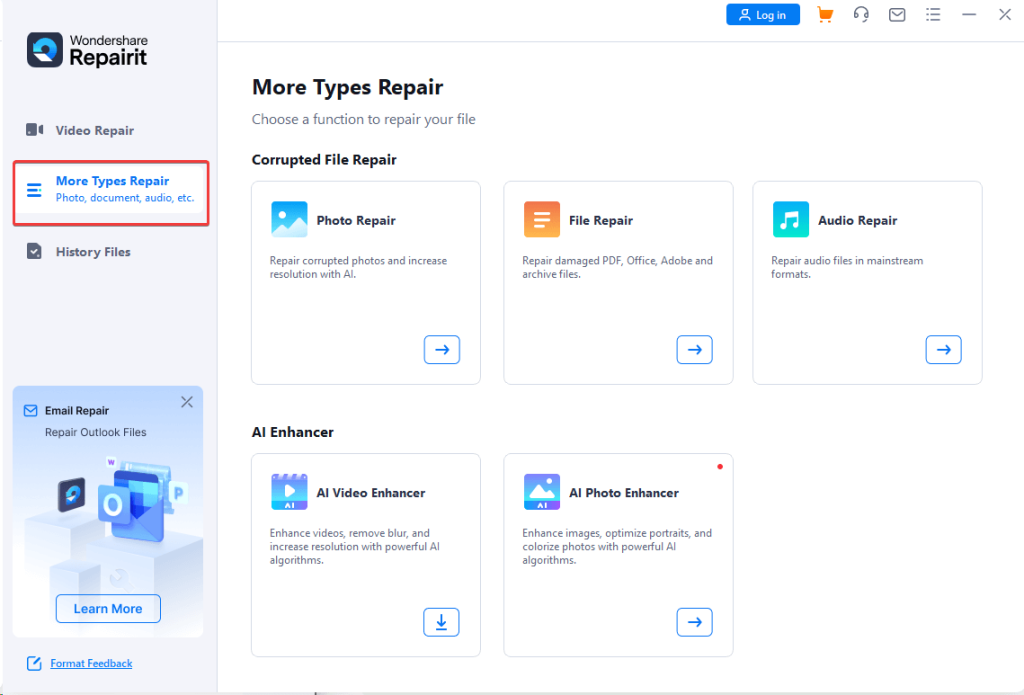 Steg 2 –Klicka på i sidofältetFler typer reparation.