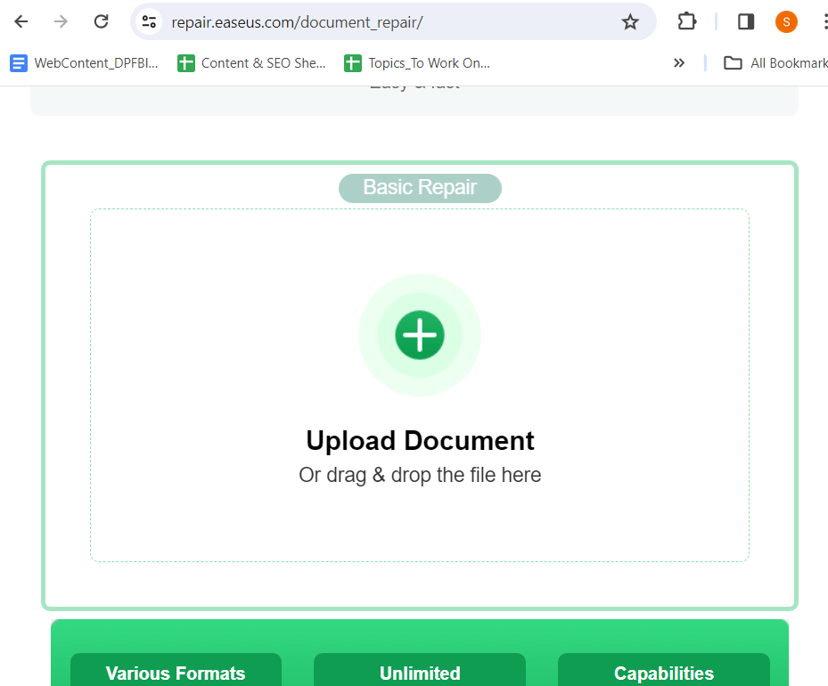 Steg 2 –Rulla ner till avsnittet som visas i skärmdumpen nedan och dra och släpp skadade RAR-filer.