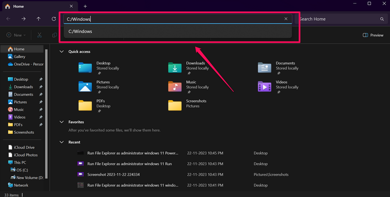 Hur, frågar du? Ta en titt på stegen till höger nedan för att lära dig hur du kan använda File Explorer-programmet för att öppna det som administratör på din Windows 11-enhet: