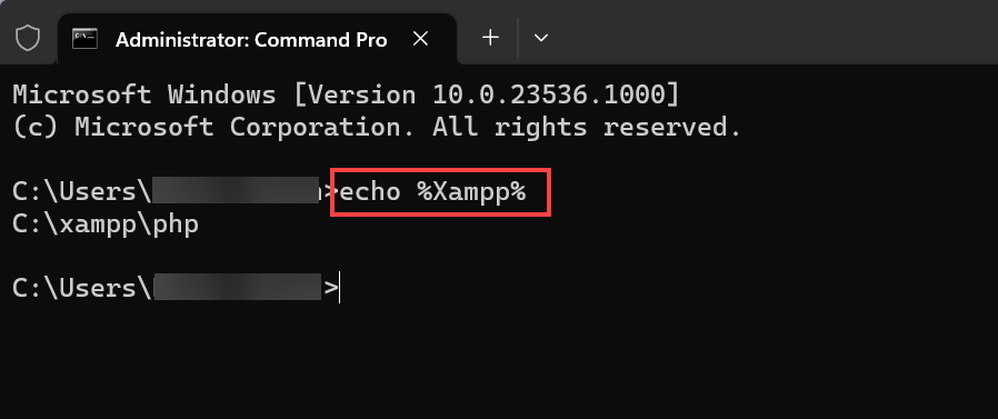 2.Skriv inecho %variablename%kommandot i kommandotolksfönstret och tryck på enter. Byt utvariabelnamnmed variabelnamnet du skapade.