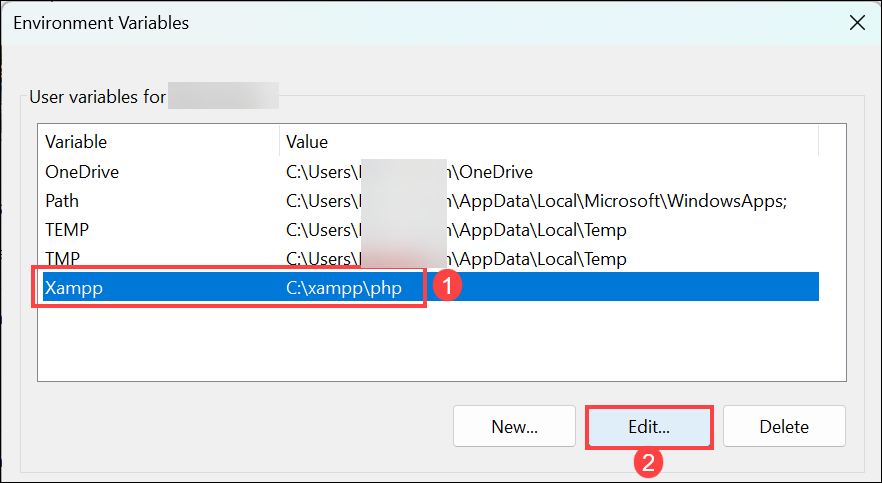 1.Öppna fönstret "Miljövariabler" som beskrivits tidigare.