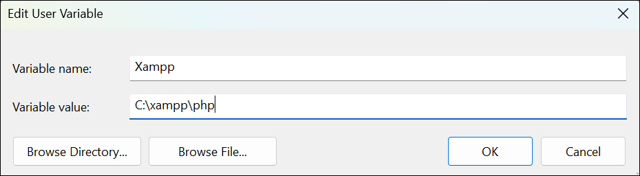 3.I fönstret "Redigera användarvariabel" ser du det aktuella variabelnamnet och värdet. Ändra variabelnamnet eller värdet efter behov.