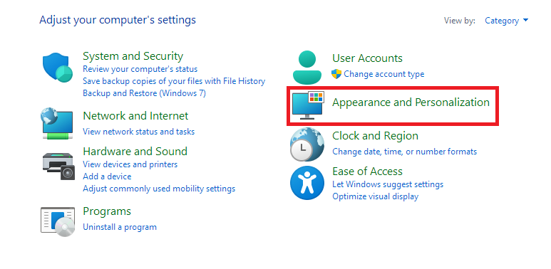 2.Klicka påUtseende och personalisering.