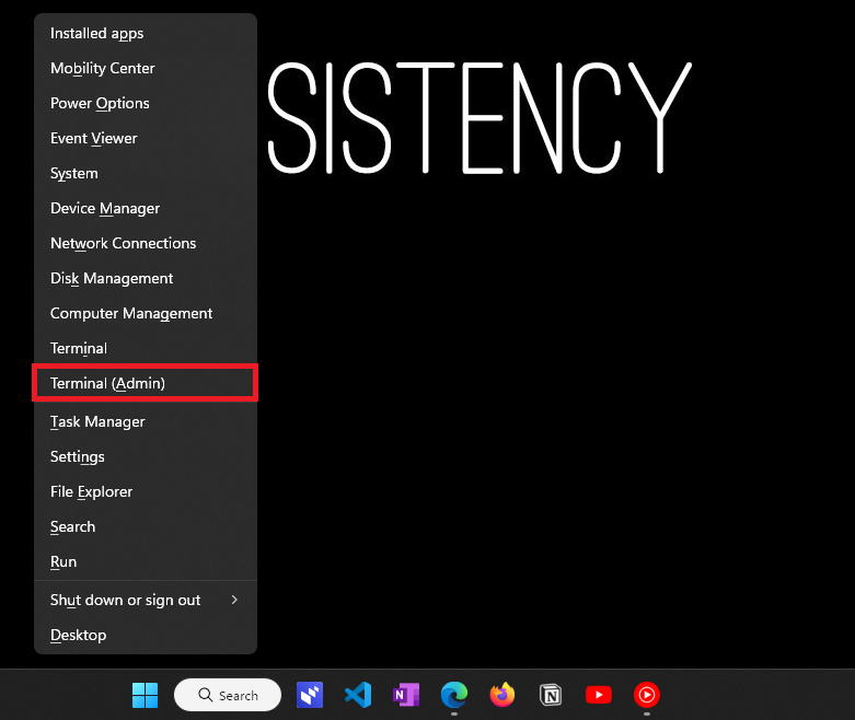 1.Öppna Windows PowerShell med administrativa behörigheter. Du kan göra det genom att trycka påWin + Xgenvägstangent från ditt tangentbord och klicka sedan påTerminal (admin)alternativ.