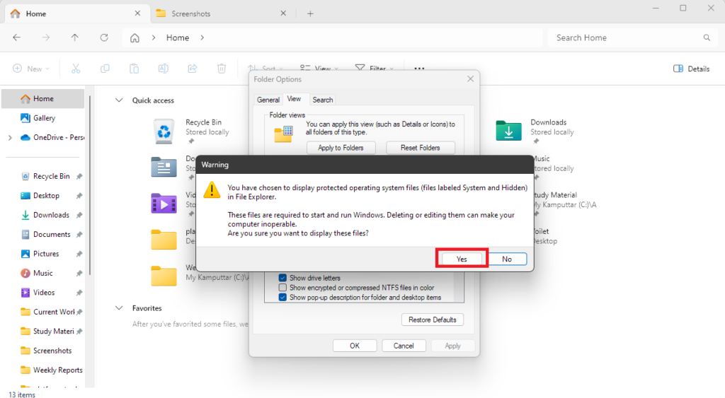 Med alla dessa metoder kan du enkelt komma åt dina dolda filer och mappar. Dessutom, om du vill komma åt de operativsystemskyddade filerna i Windows 11, så här kan du göra det: