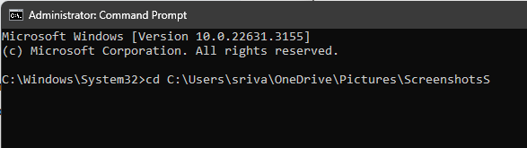 2.Efter att ha öppnat kommandotolken måste du navigera till den plats där du tror att den dolda mappen eller filerna lagrades. Du kan göra det genom att utföra följande kommando: