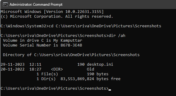 De traditionella metoderna för att visa dolda filer är alla bra, men vill du imponera på dina vänner och få dem att tro att du är en hacker? Om ja, då är den här metoden för dig. CMD eller kommandotolk är en textbaserad kommandoexekveringsmiljö som låter dig utföra vissa uppgifter genom att kommunicera med hjälp av kommandon. Så här kan du visa dolda filer i Windows 11 med kommandotolksappen: