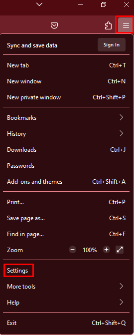 - Starta Mozilla Firefox och gå till appmenyikonen i det övre högra hörnet av skärmen.