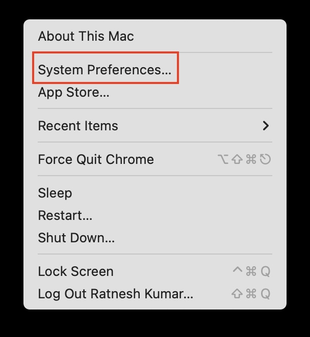 1.Klicka påApples logotyp i det övre vänstra hörnet av din Mac-skärm.