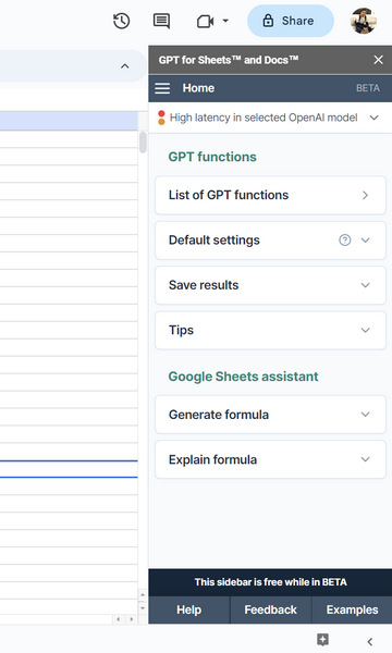 Är GPT för Kalkylark och Dokument gratis att använda i Google Kalkylark?