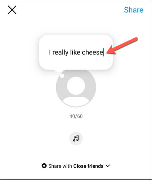 - Du kommer att se ett popup-fönster där du kan skriva din anteckning. Du kan använda text och emojis, men håll din anteckning inom gränsen på 60 tecken.