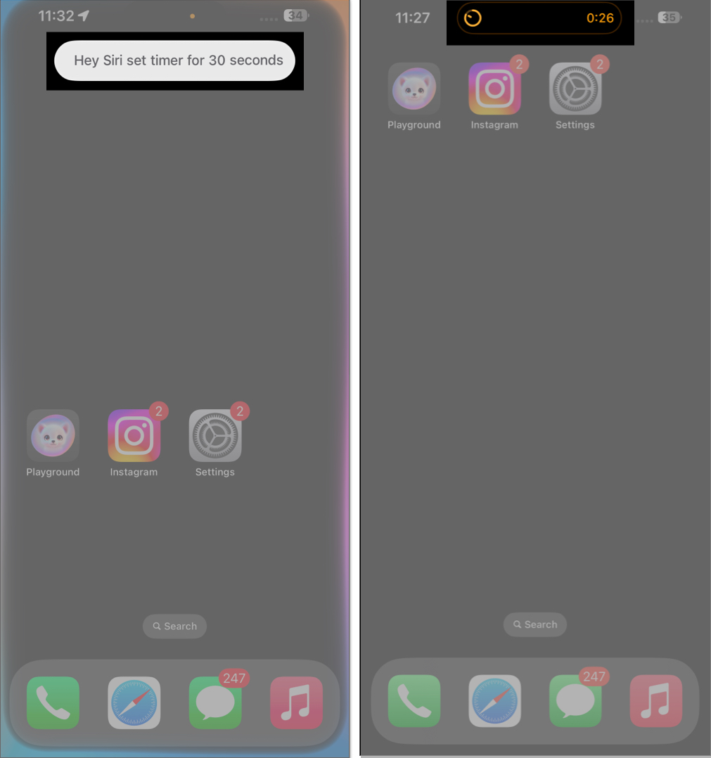 Försök:"Hej Siri, ställ in en timer på 30 sekunder."