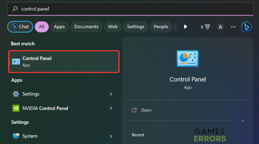 - Tryck på Windows-tangenten och skriv sedanKontrollpanelenoch öppna det första resultatet.