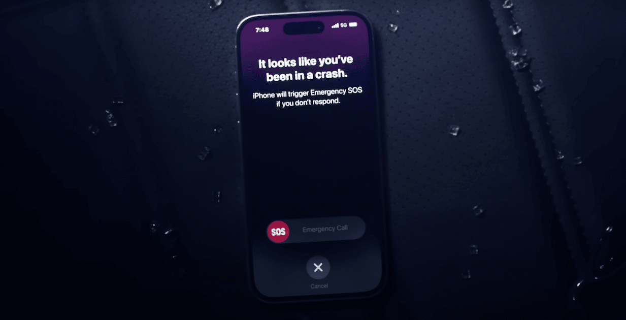 - Krockdetekteringär en banbrytande säkerhetsförmåga. Drivs av det nya dynamiska intervallgyroskopet och accelerometern med dubbla kärnor som kan detektera G-kraftmätningar på upp till 256Gs, Crash Detection på iPhone kan upptäcka en allvarlig bilolycka och automatiskt ringa räddningstjänsten när en användare är medvetslös eller inte kan nå sin iPhone.
